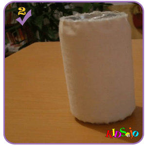 افرغي علبة المشروب الغازي وغلفيها بقطعة قماش بلون سادة ابيض